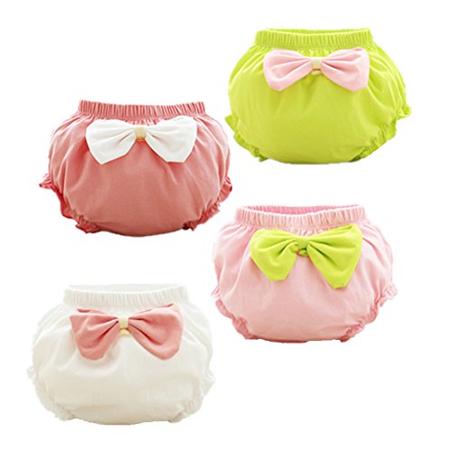 JIEYAベビー幼児の女の子の下着キャンディーカラーボウノットパンティー、4パック