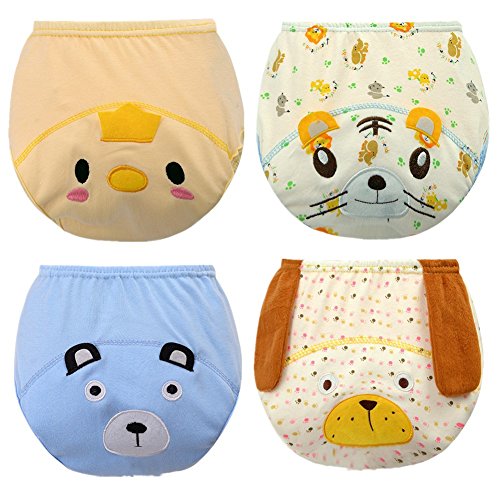 JIEYA幼児ベビーボーイズガールズ4パックまたは6パックトイレトレーニングパンツ布地おむつおむつ下着 (1-3Y, 4枚組 B)