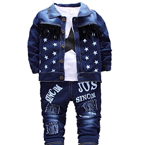Jieyaベビーボーイズジーンズ3点セットスタープリントジャケットコート+ Tシャツ+パンツ カラー: ブルー