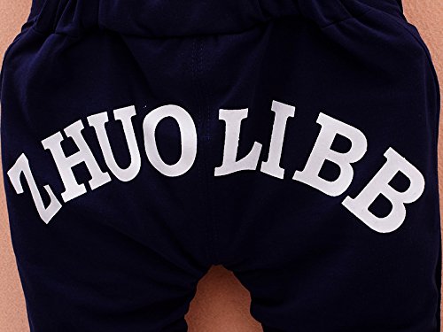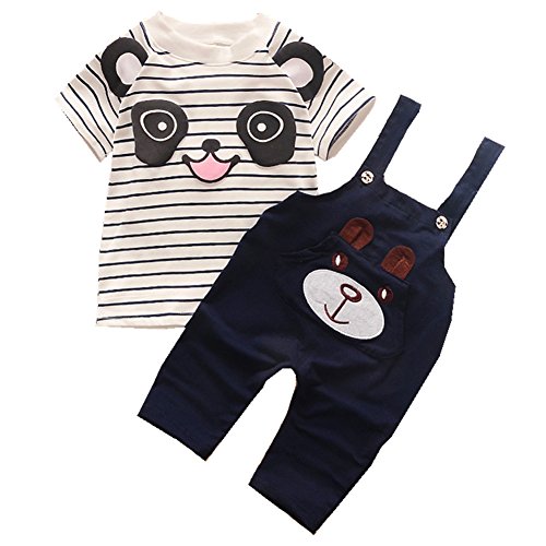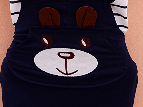 JIEYA 女の赤ちゃん半袖ストライプTシャツ+ベアオーバーオール2個服セット (0.5-1year, 紺青)