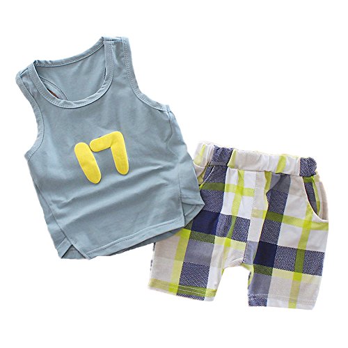 JIEYAベビーボーイズノースリーブサマータンクトップ+チェック柄ショーツ
