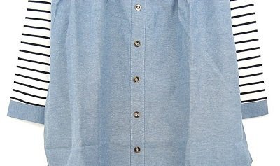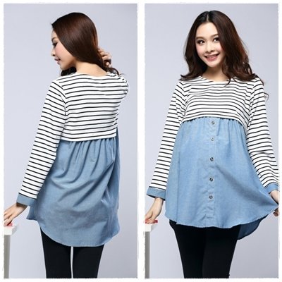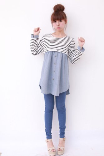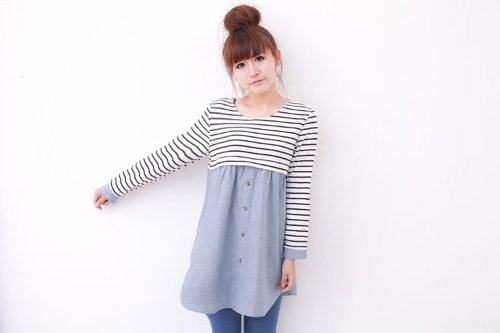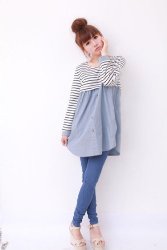 お腹を優しくカバーしてくれる、シンプルで爽やかなマリンテイストのマタニティウェアです。