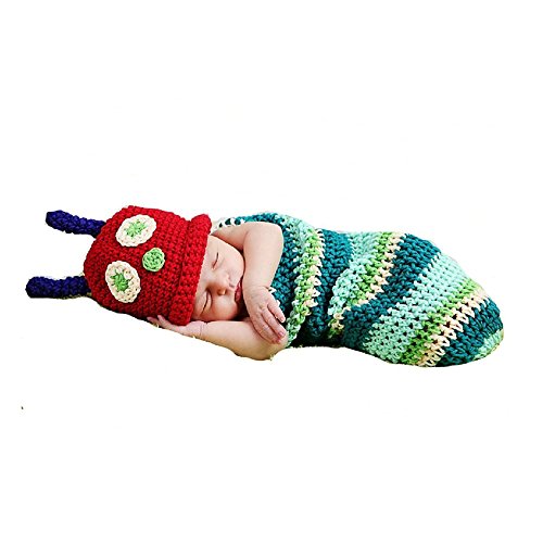 新生児 赤ちゃん 写真撮影 小道具 キッズコスチューム ベビー用着ぐるみ コスチューム 寝相アート(100日 記念写真/写真撮影用) 出産祝い (あおむし)