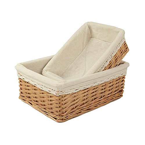 RURALITY シンプルかつエレガント ウィッカー 収納バスケット 内張り布付き (セット)