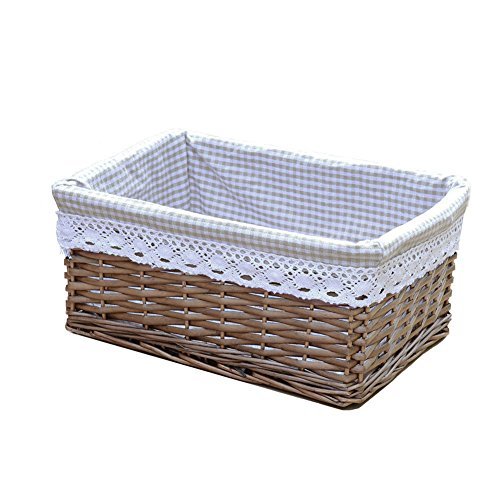 - RURALITY Willow Wicker Storage Basket with Liner, Coffee Color, Large