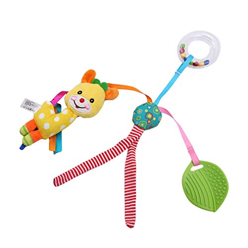 - 刺激的なビジュアル:鮮やかなぬいぐるみのラトルで鮮やかな表現で、赤ちゃんの注意を引き付けやすく、視覚的発達を刺激します。