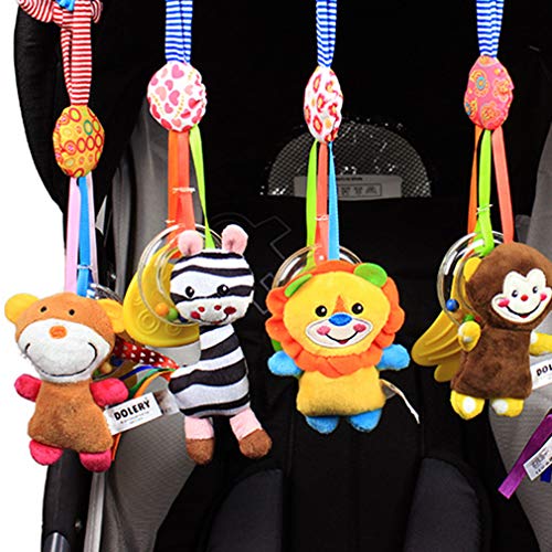 JIOLK ベビーカー用おもちゃ ぬいぐるみ 吊り掛け ふわふわ 飾り 赤ちゃん ハンギングトイ 音鳴り 透明エプロン 動物のベビーカーベッド 寝かしつけ用品 可愛い動物玩具 知育玩具