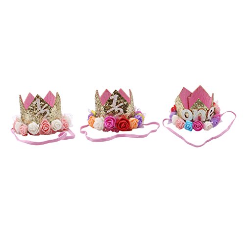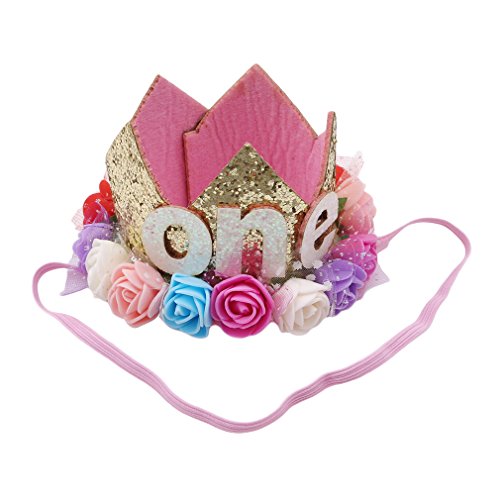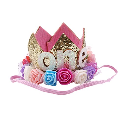 JIOLK 髪飾り こども 王冠 お花 ヘアーバンド 1歳 1/2 one ヘアピンおしゃれ ヘアアクセサリー かわいい かみかざり ハーフバースデー 誕生日 パーティ 記念日 写真 撮影