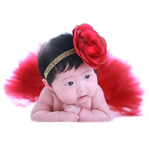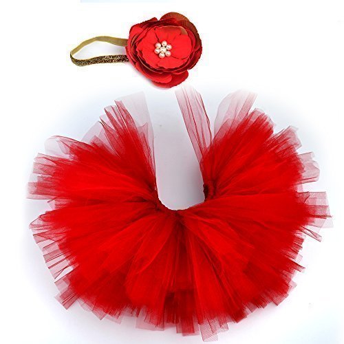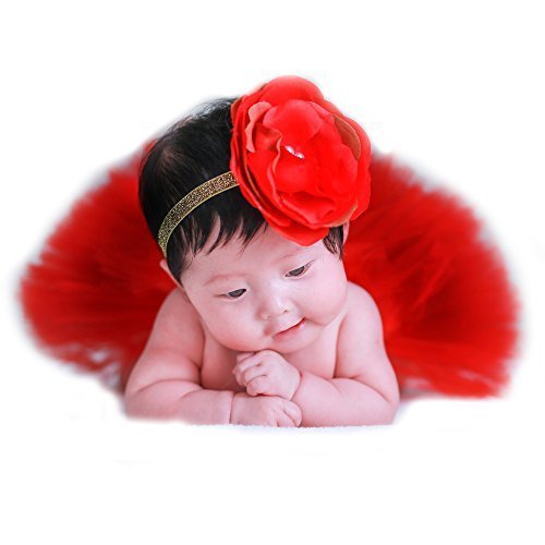 - JISEN Photography Prop Newborn Baby Infant Lovely Costume TuTu Dress Flower Headband 0-3 Month (Red)