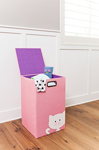 Sleek attached lid keeps dirty clothes out of sight;Collapses for easy storage;Comfortable handles for easy transport;Fun butterfly character