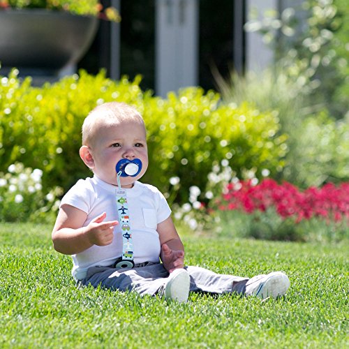 Easy-attach clip won't rust;Works with multiple pacifier styles;Stylish prints and colors