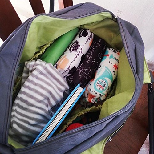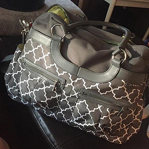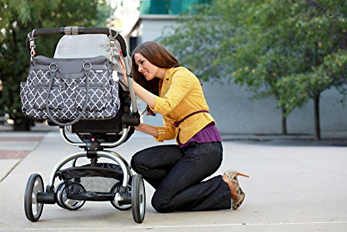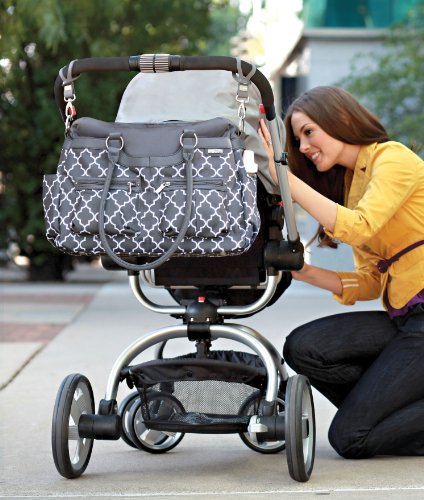 7 exterior, 4 interior pockets;Bottle pocket;Removable, padded shoulder strap;Includes grips stroller attachments;Coordinating changing pad included