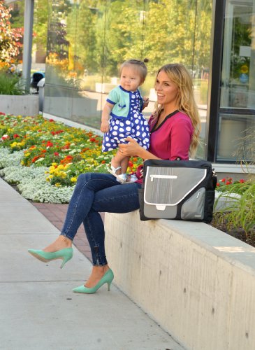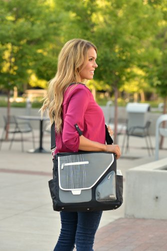 Roomy interior with organizer pockets;Includes grips stroller attachments, coordinating changing pad, and pacifier pod;Insulated bottle pockets;Wallet organizer under magnetic front flap