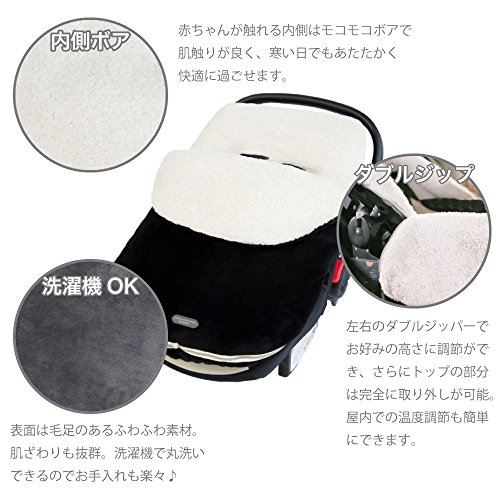 - 赤ちゃんに触れる内側がフワフワのボアであたたかいフットマフ。ベビーカー、カーシート、ジョガーに取り付け可能です。
