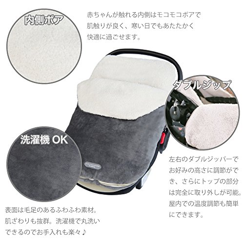 - 赤ちゃんに触れる内側がフワフワのボアであたたかいフットマフ。ベビーカー、カーシート、ジョガーに取り付け可能です。