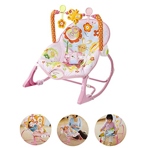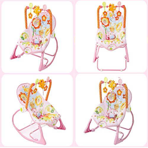 ベビースイング - 多機能電動ベビーバウンサー - 新生児用音楽/振動ボックス/おもちゃで調節可能なリクライニングチェア0-36ヶ月,Pink
