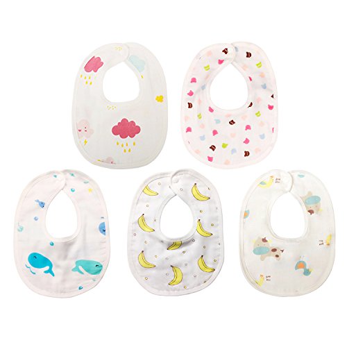JMITHA 赤ちゃん よだれかけ ベビー スタイ 男の子 女の子 ビブ 食事 エプロンコットン100% 柔らかい 360°回転可 5枚セット (C) (A)