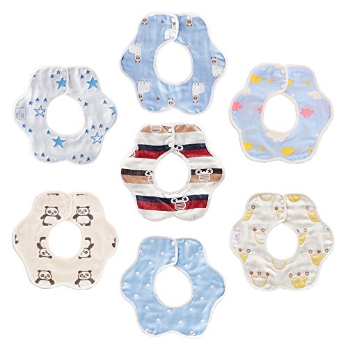 JMITHA 赤ちゃん よだれかけ ベビー スタイ 男の子 女の子 ビブ 6重 お 食事 エプロンコットン100% 柔らかい 360°回転可 7枚セット (I)