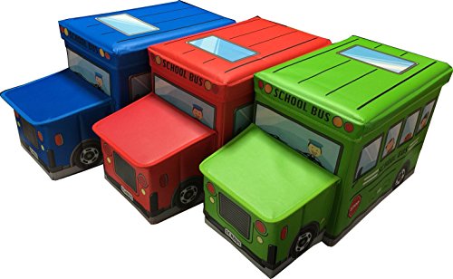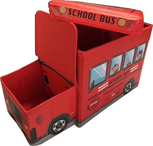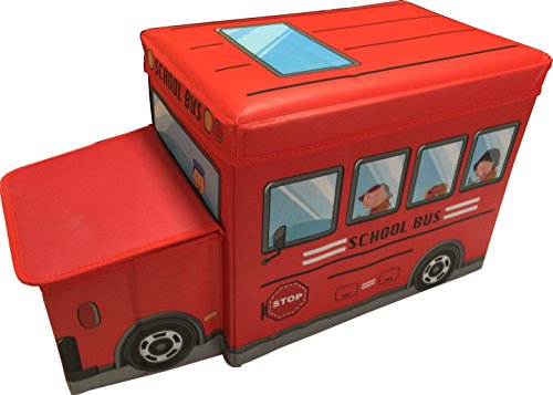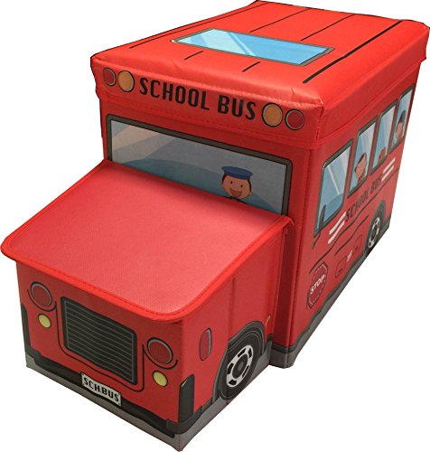 スクールバス型おもちゃ収納BOX【レッド】/トイボックス/おもちゃ/玩具/小物入れ/乗り物/座れる/折りたた