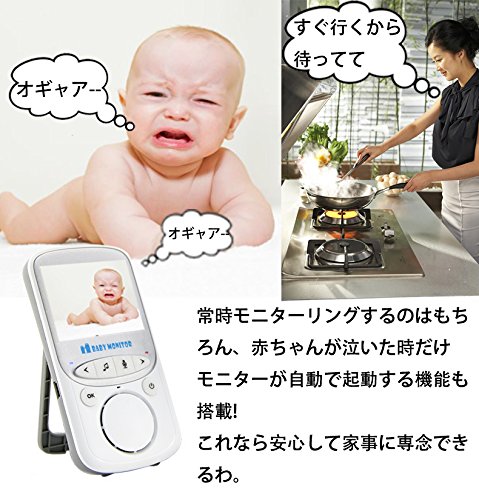- 【操作が簡単】:ネットに接続する必要が無し。カメラは電源を接続する必要があります、モニターは充電式なので、持ち運んでどこでもお使いいただけます。通話ボタンを長押すと、赤ちゃんと通話できる。同期ボタンを押すと、赤ちゃんや部屋の様子が見える、 セーフティーを確保する。スマート設計で、子供が寝ている時など静かな場所で、画面が自動に消え、節電します。子供が目覚めて、泣くと、画面が自動に現れて、音もママのどころに届けます。