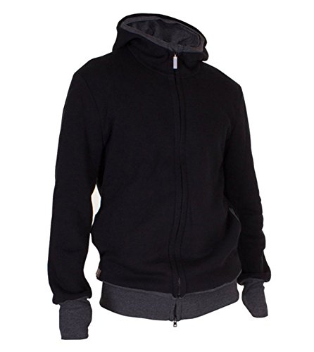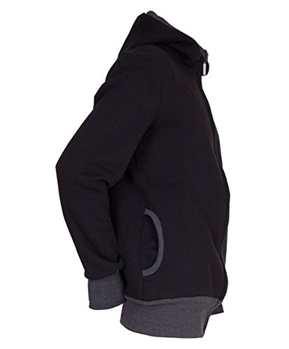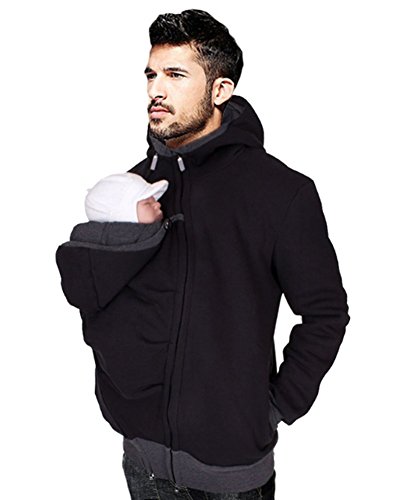JN メンズ マタニティ ロングパーカー マルチ防寒 マタニティウェア ベビーカーカバー パパコート 長袖 フード付 ダッカー付き ベビーキャリア 暖かい カンガルー セーター ちゃんを抱っこ便利 保温 無地 ブラック (XL)