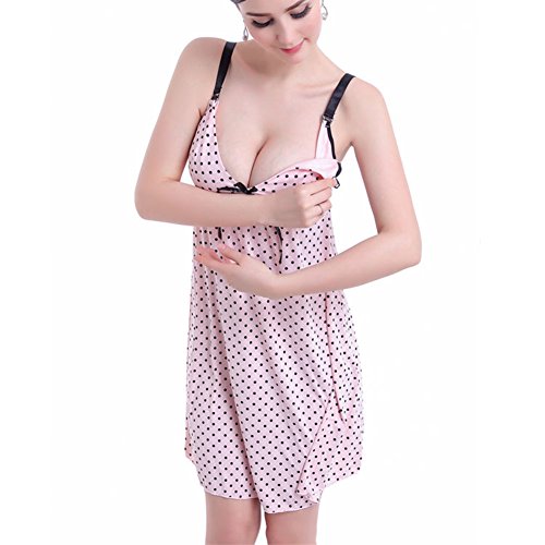 マタニティ パジャマ スリップ 水玉ドット柄 妊婦服 産前 産後 授乳 ドレス セクシー 部屋着 ルームウェア (L, ピンク)