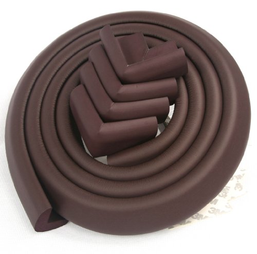 JNTworld ケガ防止! コーナークッション コーナーガード 赤ちゃん/ベビー/お子様やご年配の方 自由DIY テーブル/ベビーベッド/柱の角などにも 【4m+コーナーパット4個+3M両面テープ付き】, ブラウン