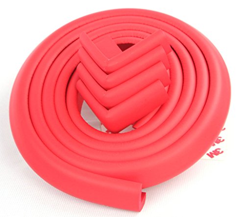 JNTworld【ガードクッション4m+コーナーパット4個付き】赤ちゃん/ベビー/お子様やご年配の方 ケガ防止! 360度全面保護 自由DIY コーナーガード付き 【10色選択】テーブル/ベビーベッド/柱の角などにも 2014年最新版超弾力性抜群!, 赤い