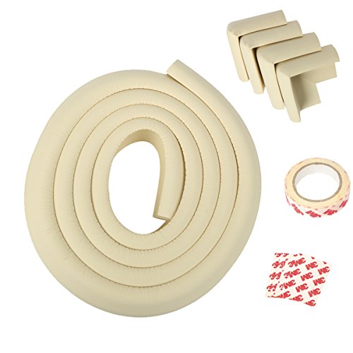 JNTworld コーナークッション ケガ防止 コーナークッション コーナーガード 赤ちゃん/ベビー/お子様やご年配の方 自由DIY テーブル/ベビーベッド/柱の角などにも 2m+コーナーパット4個+3M両面テープ付き ベージュ