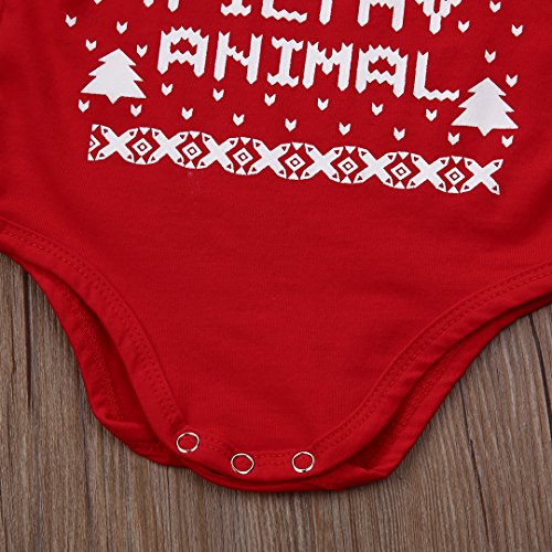 幼児新生児ベビー少年少女ロングスリーブクリスマスレタープリントロンパーボディスーツジャンプスーツ服服ギフト (100, レッド)