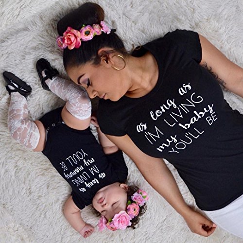 マッチングママベビーギフトセット - 女性ショートTシャツ&ベビーボディスーツロンパー (アダルト-M)