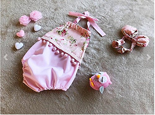 幼児の赤ちゃんの女の子0-24ヶ月夏のピンクハーネスロンパードレスフラワータッセルボディスーツジャンパーズサンツィット (90)