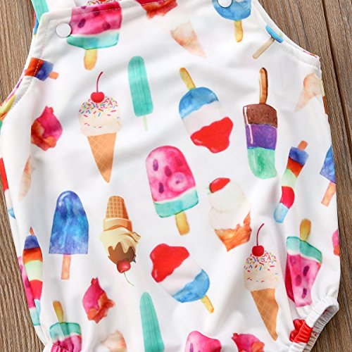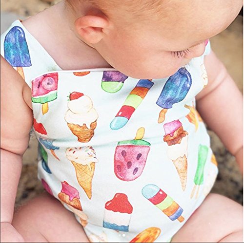 0-24M新生児の幼児の赤ちゃんの少年少女のアイスクリームプリントコットンロンパーハーネスジャンプスーツ夏服 (100)