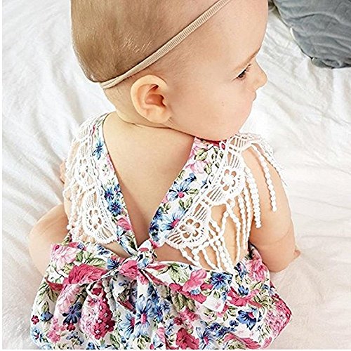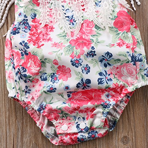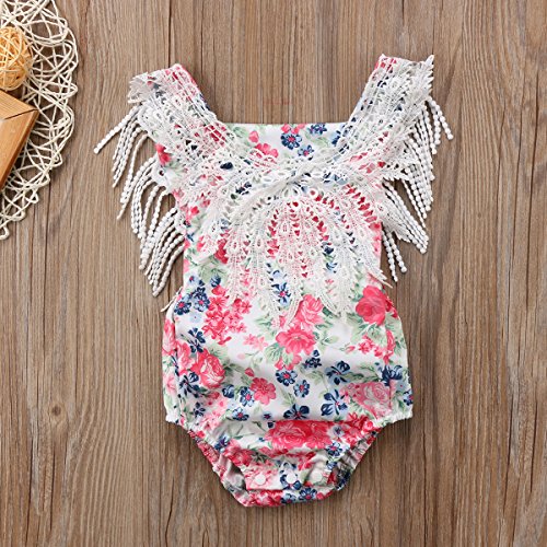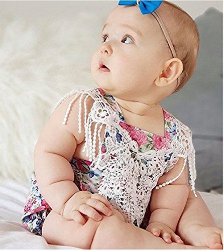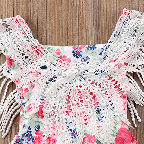 幼児の赤ちゃん少女ワンピース半袖ロンパーフルフラワータッセルボディースーツサンツ (100)