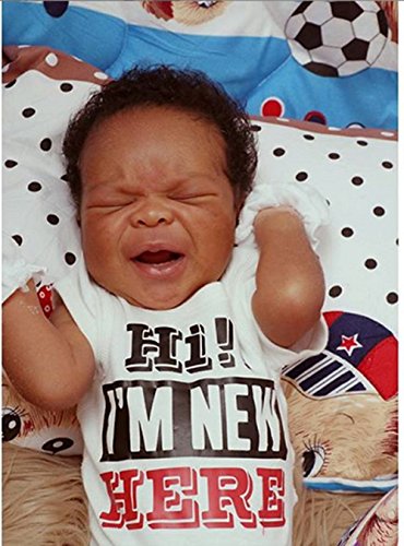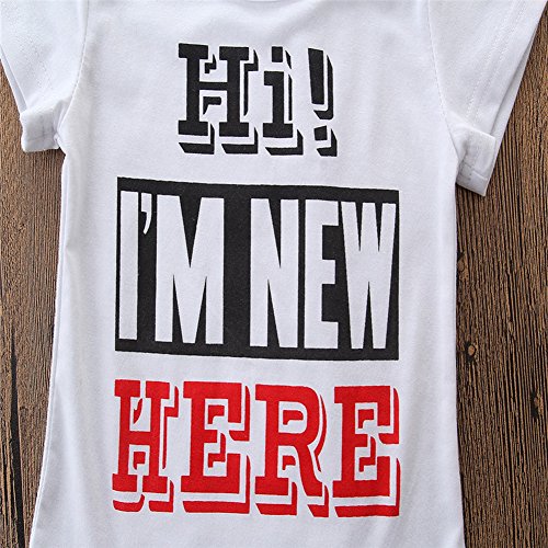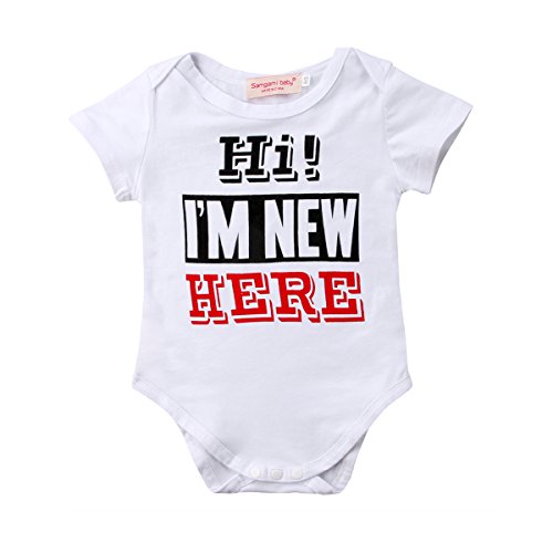 0-24M赤ちゃん男の子女の子ロンパーI'M NEW HEREプリントプリントされたボディスーツジャンプスーツ (100)
