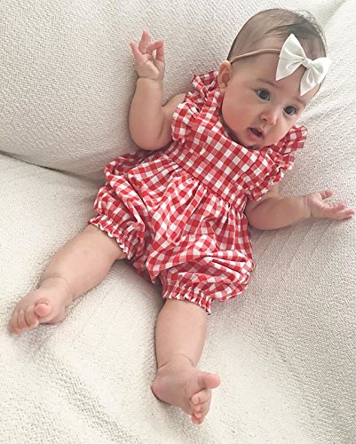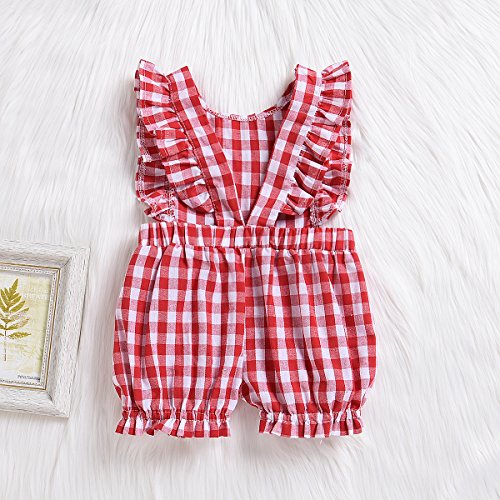 新生児幼児の女の子のジャンプスーツレッドプーズレーススリーブロンパーボディスーツの服 (80)