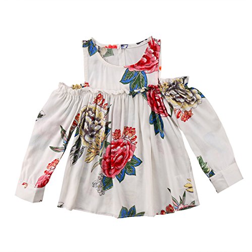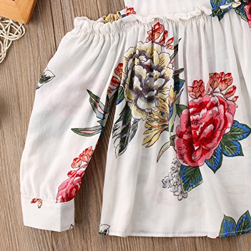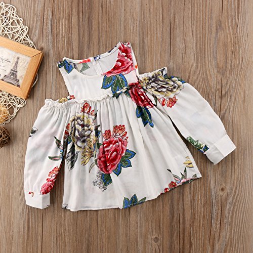 0-24M新生児の幼児の赤ちゃんの女の子デジタル花プリントブラウスオフショルダーロングスリーブコットンTシャツトップドレス (70)