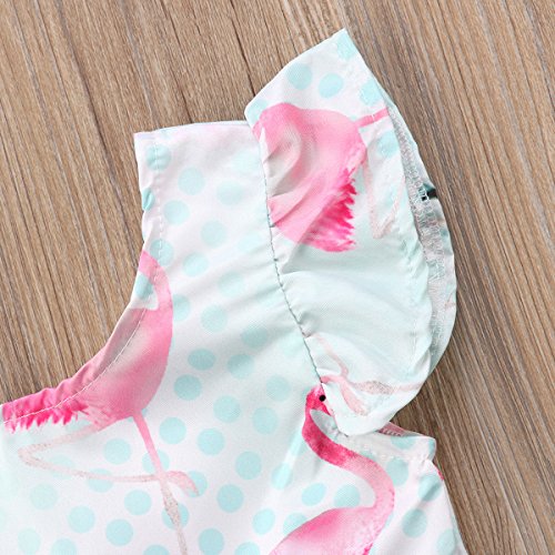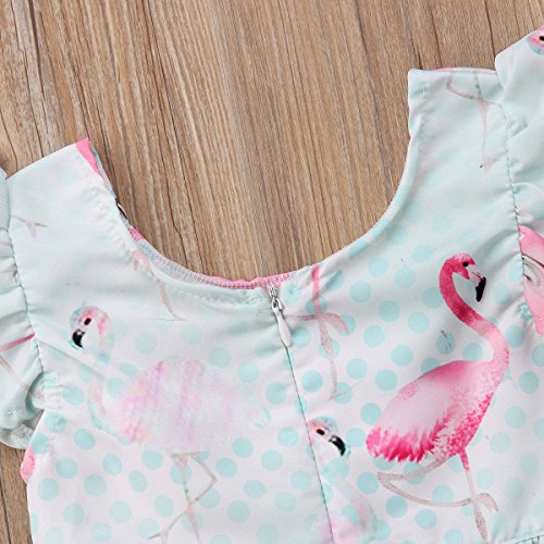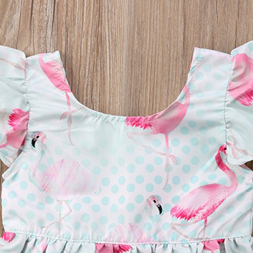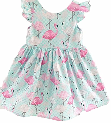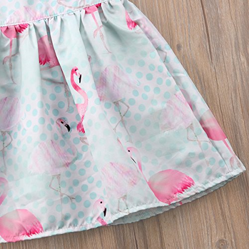 子供服 ベイビーガールズドレスフラミンゴプリントキルトブルーレースプリーツショートスリーブプリンセススカート (80)