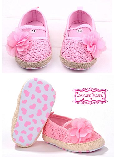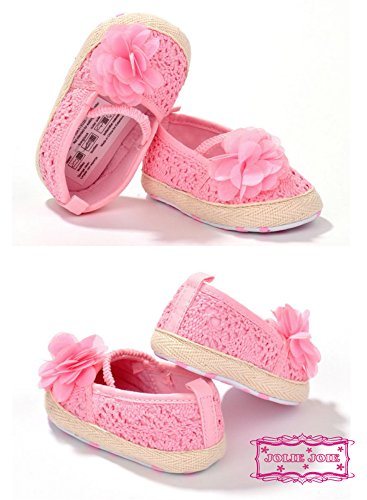 (ジョリージョワ) JOLIE JOIE 【 ベビー ファースト シューズ プレゼント 出産 祝い 】 滑り止め 付き 赤ちゃん 歩行 練習 用 よちよち 歩き 女の子 室内 履き ルーム ハーフ バースデー 記念日 レース 刺繍 花 フラワー はじめて の たっち あんよ トレーニング 乳幼児 乳児 お宮参り 結婚式 ガール レディ 女児 ピンク 12cm A32