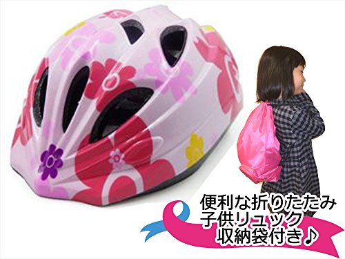 [JOS SPORTS] 子供用 サイクル キッズ ヘルメット 自転車用 ヘッドギア かわいい かっこいい 安全 (ピンク・花, S 45-55cm)