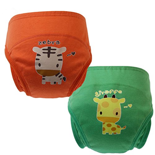 JOYORUN(ジョユラン)トレーニングパンツ キャラクター ベービーパンツヒップ防水加工4層 2枚組男の子 女の子 グリーン-オレンジ90cm