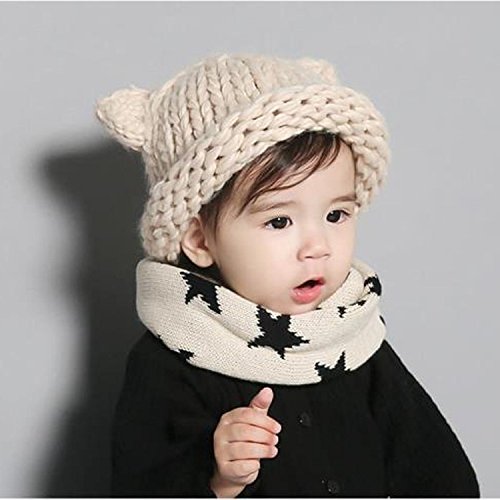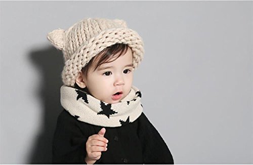 手編み風ニット帽 可愛い耳付き うさぎちゃんねこちゃん風 お出かけ お散歩お出かけ ベビー キッズ 赤ちゃん 子供用 防寒 防風 クリスマス 誕生日プレゼント (猫の耳)
