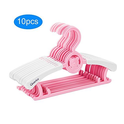 Quarice ベビーハンガー 子供 スライド ハンガー 赤ちゃん 洗濯 物干し 衣類ハンガー 伸縮 10本セット 滑らない 新生児から大人まで 多機能 (ピンク)