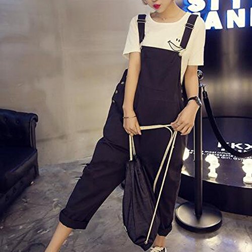 JQ trendサロペット オーバーオール かわいい シンプル 旅行カジュアル おでかけ ロールアップ レディース マタニティ (XXL, ブラック)