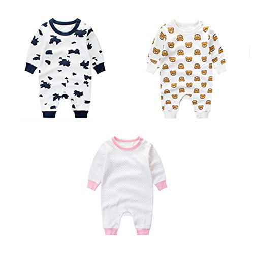 JQ trend 新生児服 カバーオールロンパース 前開き 長袖 四季兼用 3点セット (80cm, C)