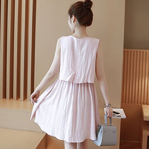 JQ trend レディース マタニティー 授乳服 授乳口 半袖 ボーダー ワンピース フレアスカート 産前 産後 (2色) (XXL, ライトピンク)