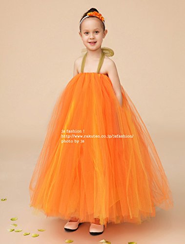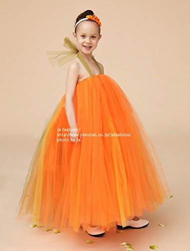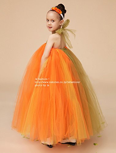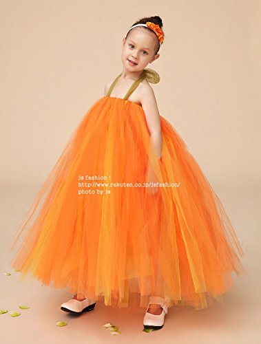 JSファッション チュールチュチュ プリンセスドレス 130-140サイズ オレンジ [並行輸入品]