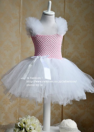 JSファッション チュールパニエ プリンセスドレス 90-100サイズ ピンク×ホワイト [並行輸入品]