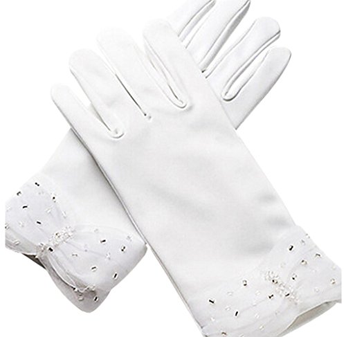 JSファッション ビジュー施し 手袋 4~7才用 ホワイト [並行輸入品]