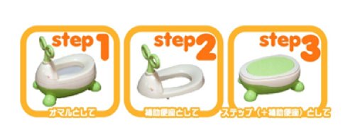 「JTC 3WAYおまる」は、3ステップで楽しくトイレトレーニングができるおまるです。(STEP1)床に足が届くおまるとして使用(10ヶ月ごろから)。(STEP2)トイレトレーニングに慣れてきたら補助便座として使用(1才6ヶ月ごろ)。(STEP3)いよいよ一人でトイレトレーニングするステップ(+補助便座)として使用(2才ごろから)。